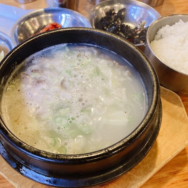 主人と娘は日替わりを注文。今回の日替わりはソルロンタンだったのですが、こちらも美味しい!中のマロニーみたいな麺もたくさん入ってて、ボリュームがしっかりあります。