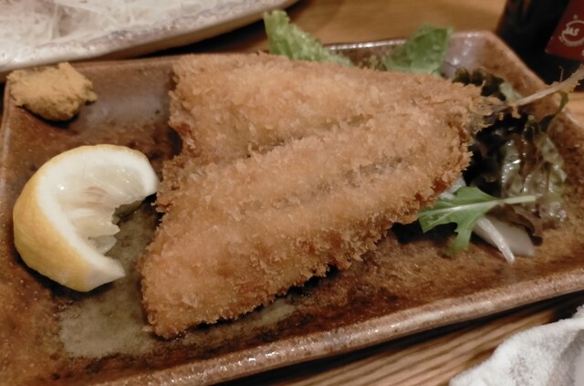 この日のアジはまた格別に巨大だったので4枚を2人でシェア、それでも食べ応えすごかった。大きさによって値段は変わってくる。中くらいのサイズで550円〜