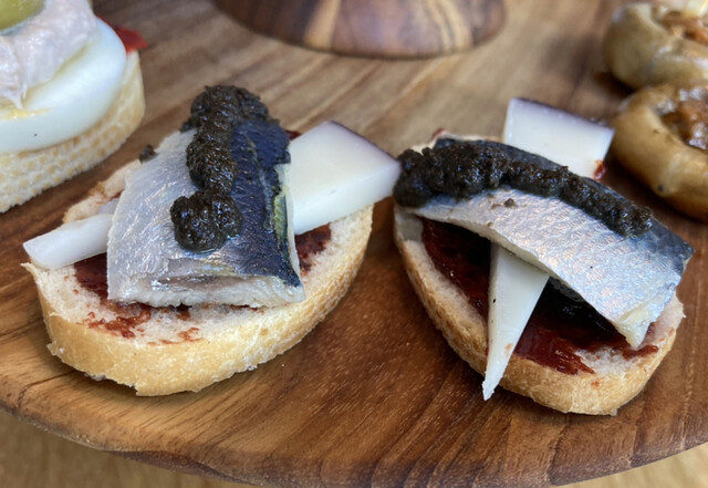ピンチョス盛り合わせ、これだけでもかなりお腹いっぱいになる、ボリュームあり
