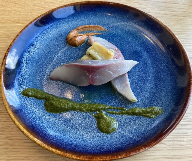 シェフが一つ一つ説明してくれる、佐島産小肌のマリネ