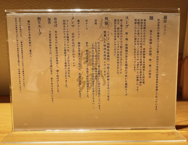ですが入ってしまえば配膳は早かったです。目の前のお客さんが食べている間に、外待ちのお客さんの分を用意しているようです。私が食べている際もチャーシューを炙ってました('ω')