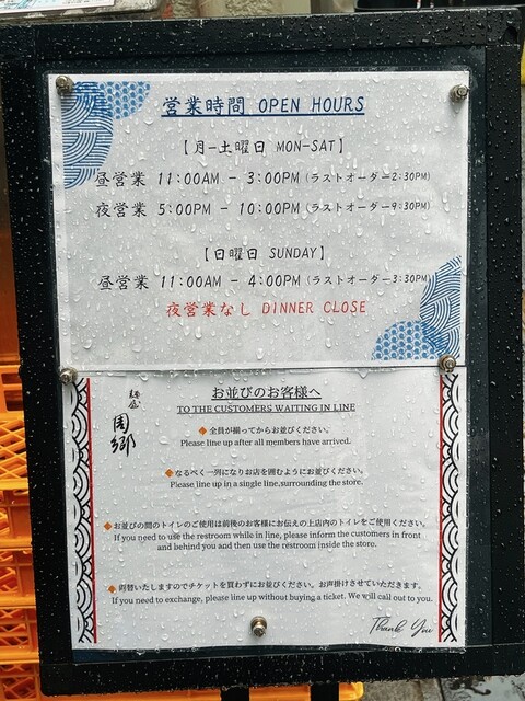 ピークを過ぎた平日13:15に訪問、土砂降りでしたが外待ち4番目です。