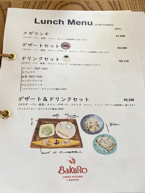 ここのランチメニューにはメインディッシュとパン等のセットがいろいろありますが、それ以外にギロピタ等の軽食メニューもあります。