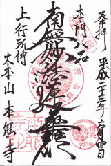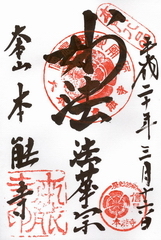 「本能寺の変」で有名な本能寺も日蓮宗です。「ご朱印」と「ご主題」を比べてみます。「ご主題」はお寺さん毎にデザインが違います。大きなお寺さんには、亡くなった高僧の墓所をおまつりする塔頭寺院があります。もちろん塔頭の中には独自に「ご朱印、ご主題」をもっているところもあります。