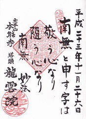 浄土真宗にはご朱印がないことは言いましたが、日蓮宗のお寺さんにも対応が必要です。普通にご朱印帳を出してお願いすれば、普通にご朱印がいただけます。