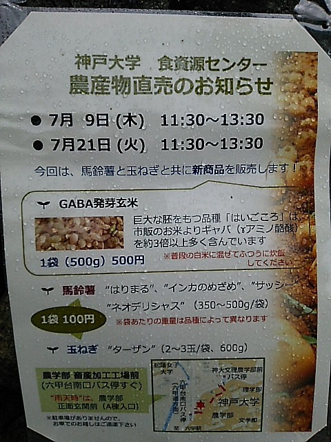 神戸大学食資源センター 農産物直売のお知らせ (2015/07/10)