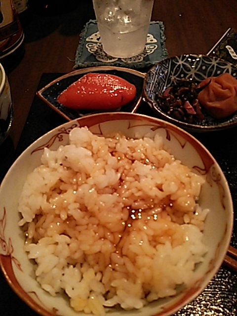 玉子かけご飯、たらこ、梅干し、しば漬け