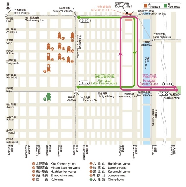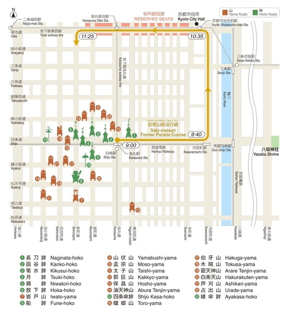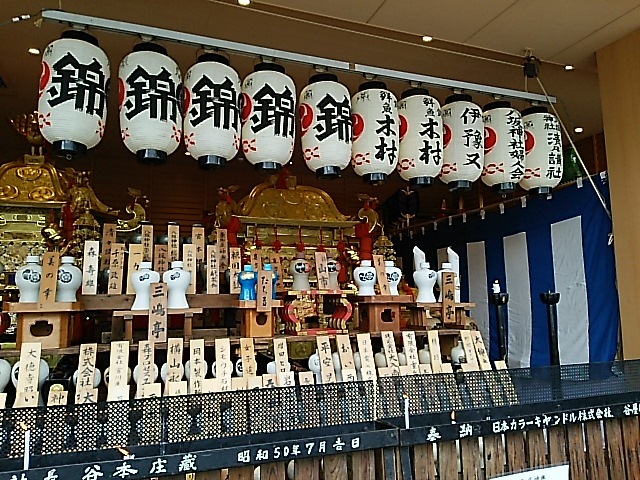 祇園祭はご存知の通り八坂神社の疫病封じ、厄除けのお祭りです。町衆が次第に経済的に力を付け、山鉾を華美に飾ったことで非常に絢爛豪華なお祭りになっていますが、本当の主役は前祭・後祭の巡行の終わった夕方の御神輿祭の御神輿なんですよ。山鉾巡行で清められた路を通って、御祭神のスサノヲノミコト(素戔嗚尊)・クシイナダヒメノミコト(櫛稲田姫命)・ヤハシラノミコガミ(八柱御子神)の3基の御神輿が八坂神社よりお出ましになり四条御旅所に鎮座され(前祭 神幸祭)、再び八坂神社にお戻りになる(後祭 還幸祭)ということです。