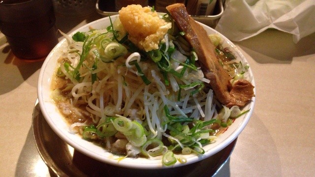 もやし増したらなかなか麺にたどり着かず、やっとたどり着いたと思ったら麺がスープがを全て吸って汁なしみたいな。
