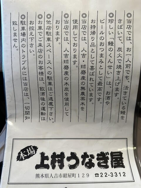10年以上、人吉に〝うえむらうなぎ〟って鰻の老舗名店があると聞いていて、一回伺った時には50人並んでいて断念した事がありました。