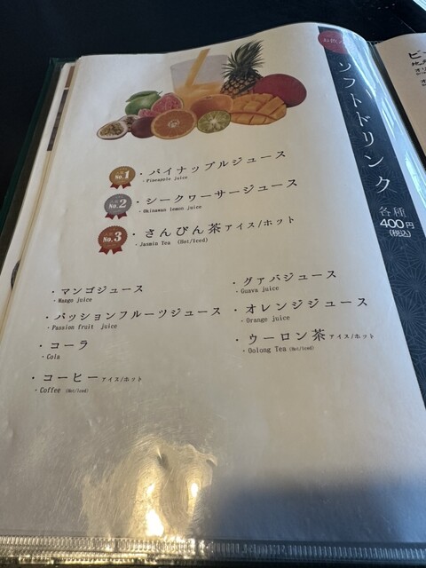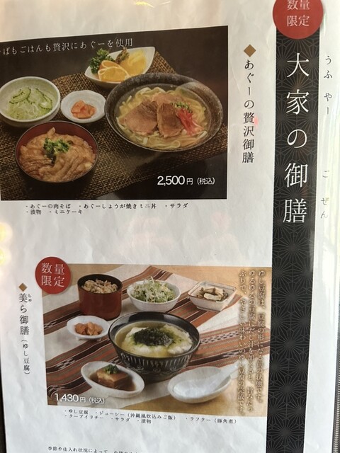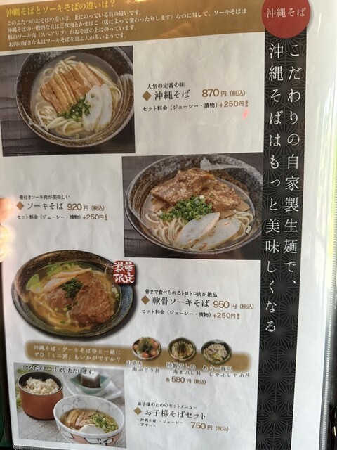 メニューはソーキそばとアグー豚を中心に構成されている印象。