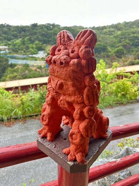 駐車場からは沖縄らしい景色を眺めながら徒歩で10分弱坂道を歩きます(障害者や妊婦さんは下の受付前まで車で行けます。)※通常は乗り物あるみたいですが、この日は乗り物がお休み中。