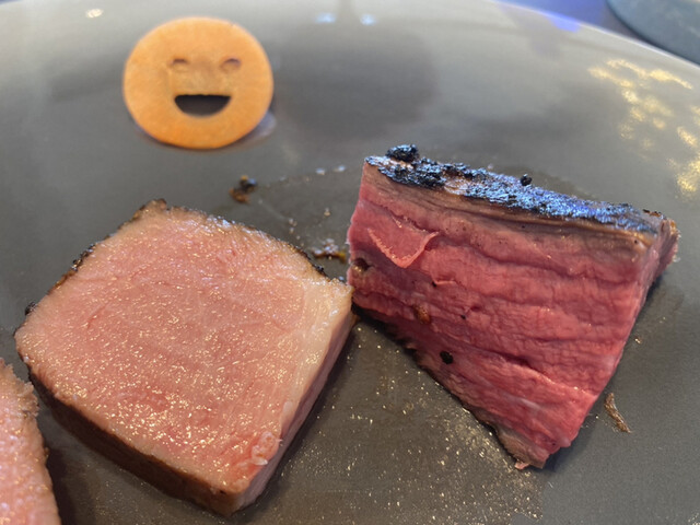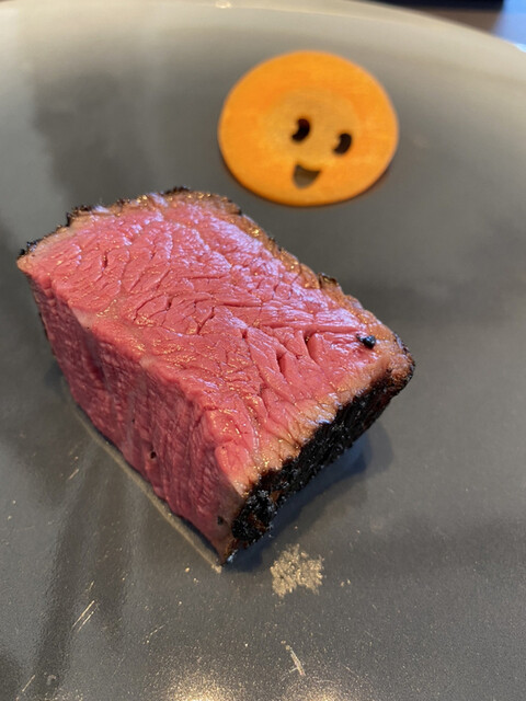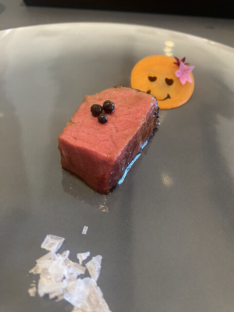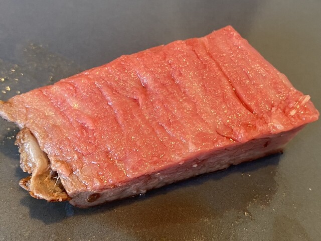 ヒレ肉 肉汁を蓄えさせる 焦げ感 コウロギ醤油にて サマザキ12年をスプレー 生胡椒
