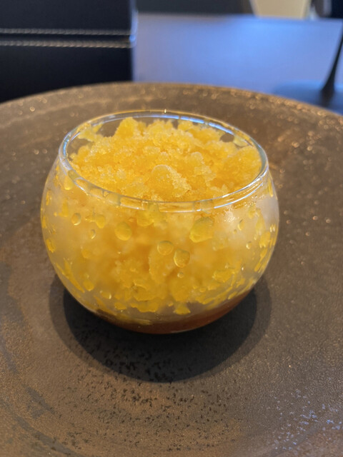 ミカンだけでつくった濃厚なクラッシュアイス、泡もミカンから作って。