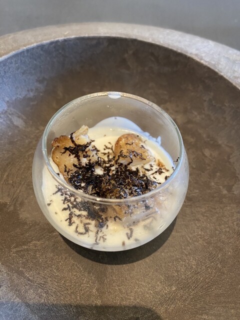 ⑲聞けば初クリーム系だとか。生ハマグリ、エキス逃したくないのでフリット、蒸し焼き、生クリームとエキス、チーズの代わりに発酵菊芋