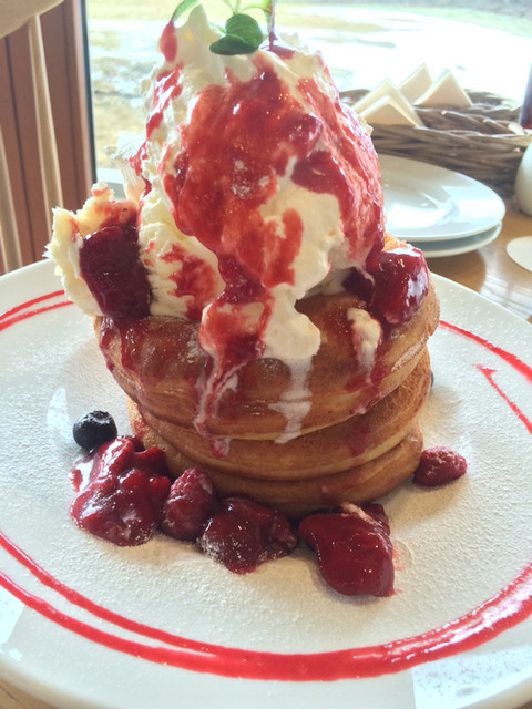 プレミアムたまごのパンケーキ~フレッシュベリーとクリームチーズ~(¥1250)→ソースかけた後