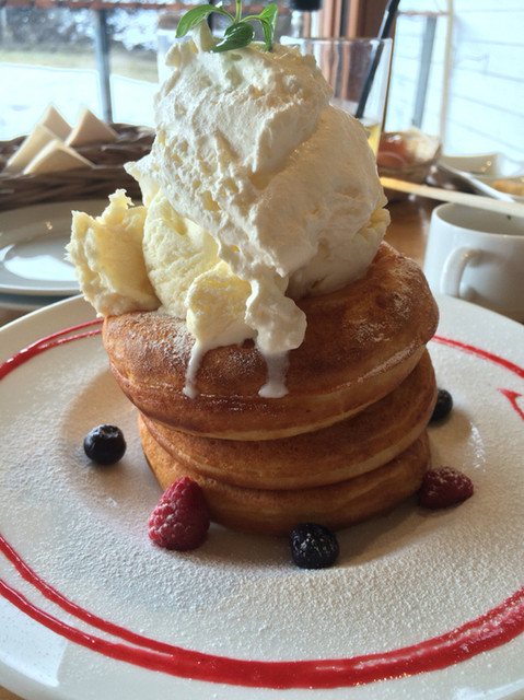 パンケーキもふわふわで、たまらんウマイ(人・_・)♡