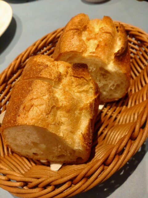 バケット¥380-(10%税込)は軽く焼かれていて田舎風パテとアーリオオーリオパスタのオイルにつけていただきました♪