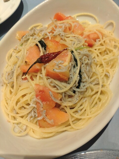 シラスとフレッシュトマトのパスタ「ビアンケッティ・アーリオオーリオ」¥1,480-(10%%税込)です。優しい味わいでした。