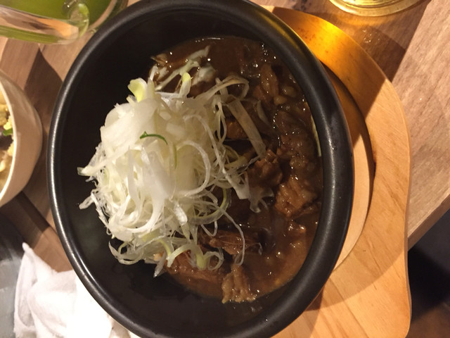 熱々の石焼き牛すじ煮込みと
