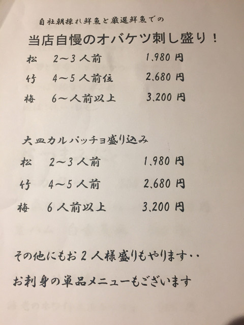 バケツ盛りのお刺身盛り合わせは