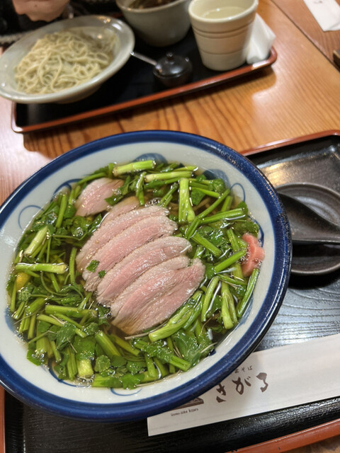 熱々のつけ汁は濃いめで鴨肉3切、鴨?肉団子が2個、せりと白髪葱かな?入っていました。