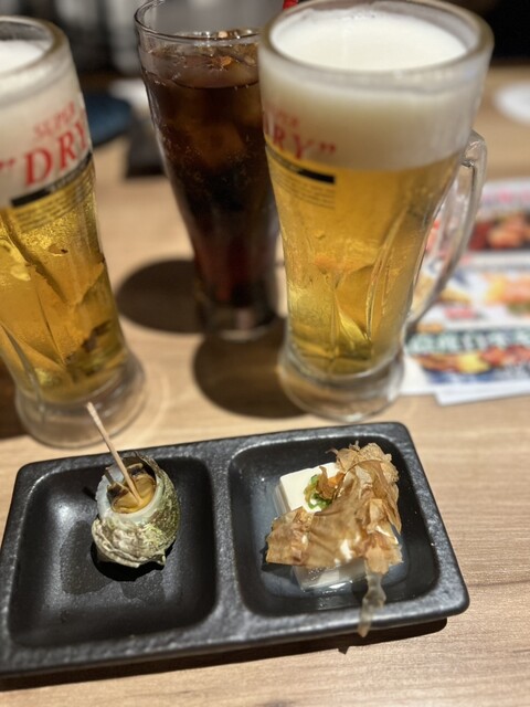 大した事ない付出しが多い中、小さいけどサザエの壺焼きと冷奴だったので喜んで食べました。