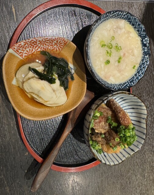 お腹いっぱいの2軒目から日本酒飲み放題を選択。色々選べたのですが、おちょこ3杯に色々な種類を注いでもらいたくさんいただけました。チェイサーにビールも頂けてサービス満点。嫌な顔もされずに気持ちのいい時間...