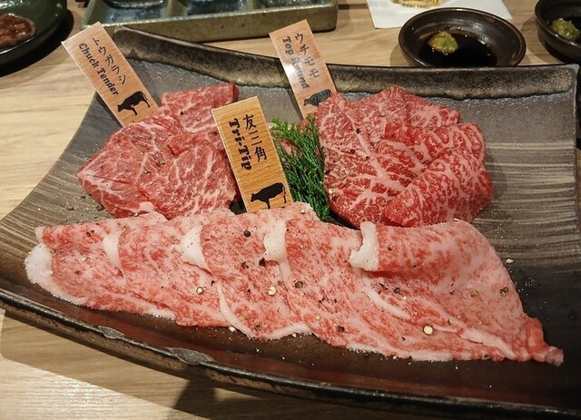 「山形牝牛3種盛り」は、「トウガラシ」と「友三角」と「ウチモモ」の三部位!