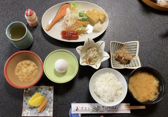 朝ごはんは普通の感じですが、おかずの味でおひつのご飯を完食してしまいました。