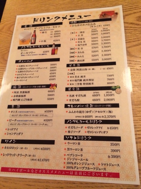徳島名物のフィッシュカツや、徳島餃子をつまみつつ…