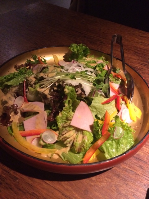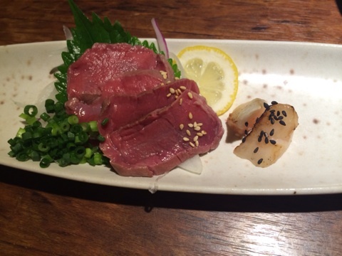 続いて気まぐれサラダに、馬刺のレア焼き~!