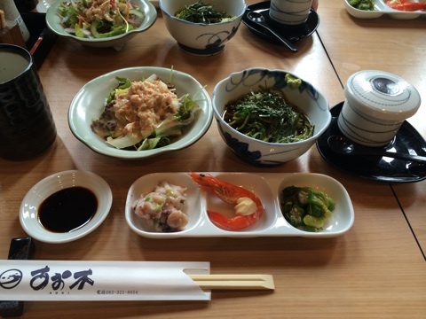 まずは小鉢ものに蟹サラダ、茶蕎麦、茶碗蒸しの登場~♪