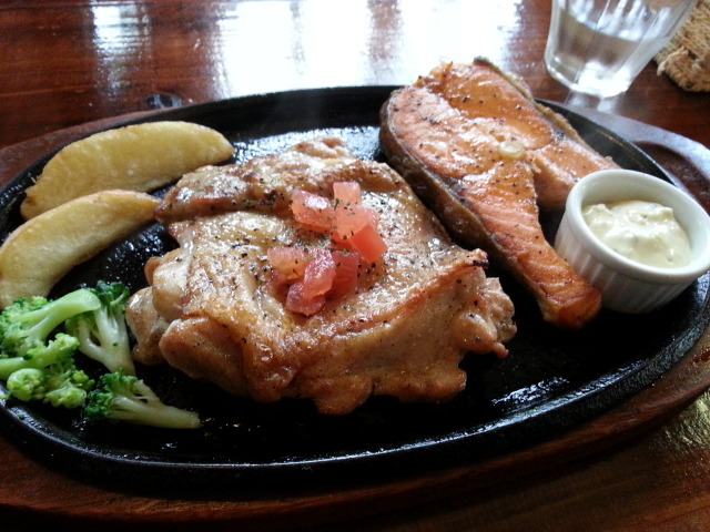 サーモンもチキンも、これまたうまかったです
