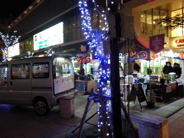 ほろ酔いでホテルへ帰る途中、牧志駅前にワゴン屋台などが出ていました