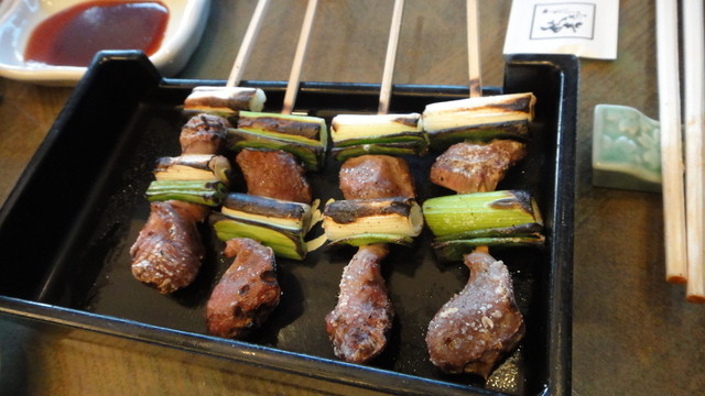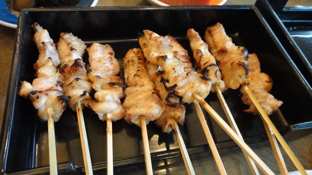 串に肉が少なく刺してありますが、一本を一口で食べれるように工夫されているらしいです。