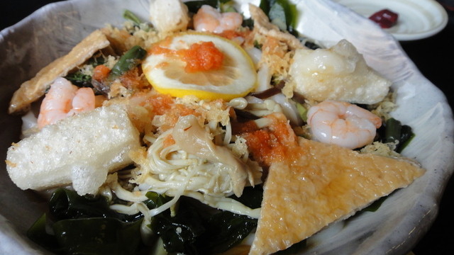 冷やしぶっかけうどんはとにかく具だくさんで単品で結構お腹が膨れます。