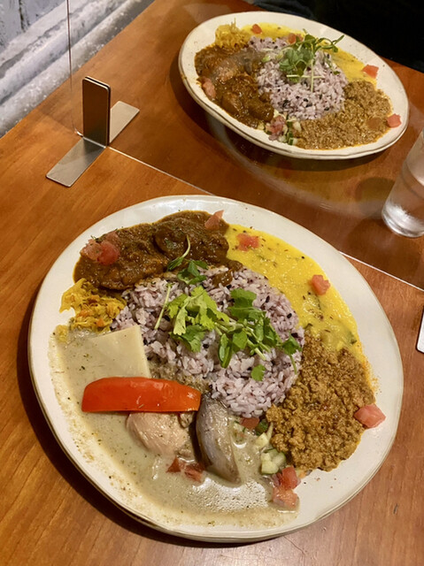 まずはそれぞれのカレーを味わってから混ぜ混ぜして食す♪