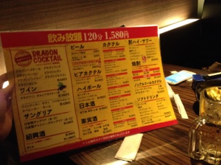 今回はオープンキャンペーンということで、飲み放題が1580円⇒780円で利用させていただきました。