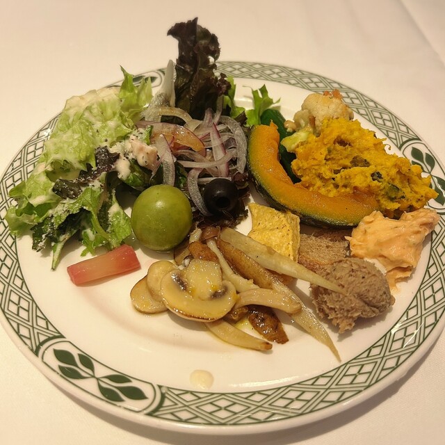 ビュッフェはビーフシチューやペンネなど温かいメニューもあって、