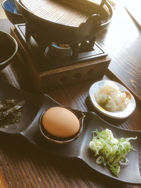 かも鍋の出汁の中に、こだわり卵を入れて出来上がる雑炊は旨味十分