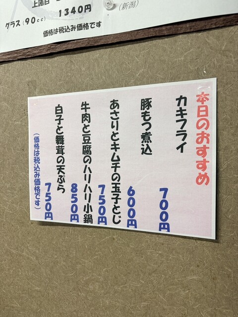 その後はレギュラーメニューの日本酒を。