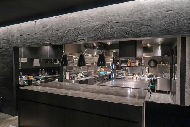 まず黒基調でシックにまとめ、大きなドライフラワーが僕らを見下ろす店内はオープンキッチンがまぁかっこいい。自分でもしレストランをやるとしたらこれ以上のお店は作れないのではないかというくらい好みのお店だった。