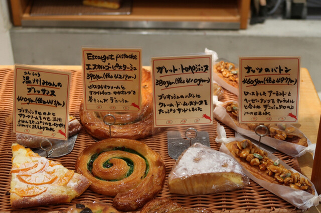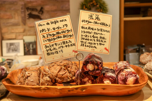 ハード系パンをベースにいろんな果物やナッツ、チーズなどが施されているパンが所狭しと並び、お店に入った瞬間、まるでパンのアミューズメントパークに来たのではないかと思わせられました。