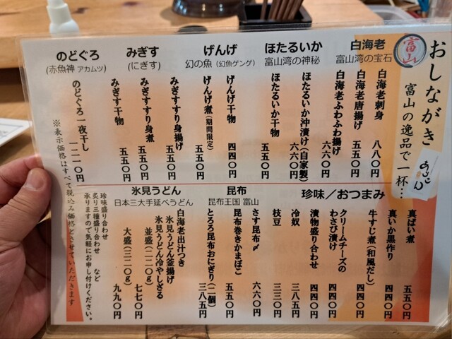 富山駅下の店はどこも待ち客列ばかりだったのに、ここはスッと座れました。