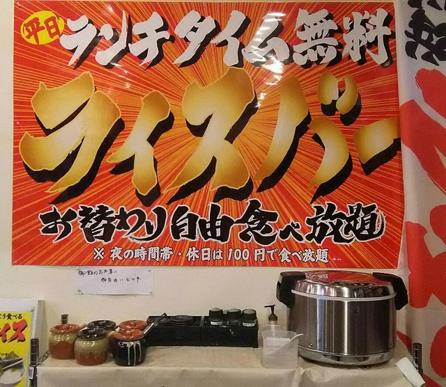 平日の夜の時間帯・土日祝日は100円でライスバーを