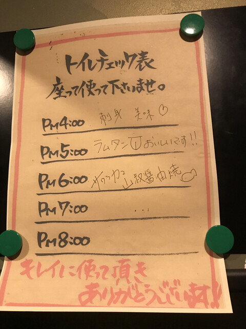 ●トイレチェック表に名前じゃなくお勧めメニュー