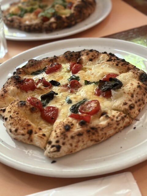 ナポレターナと、季節のピザのエビとナポリ青菜のチーズベースピザを注文しました。