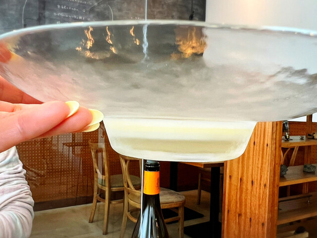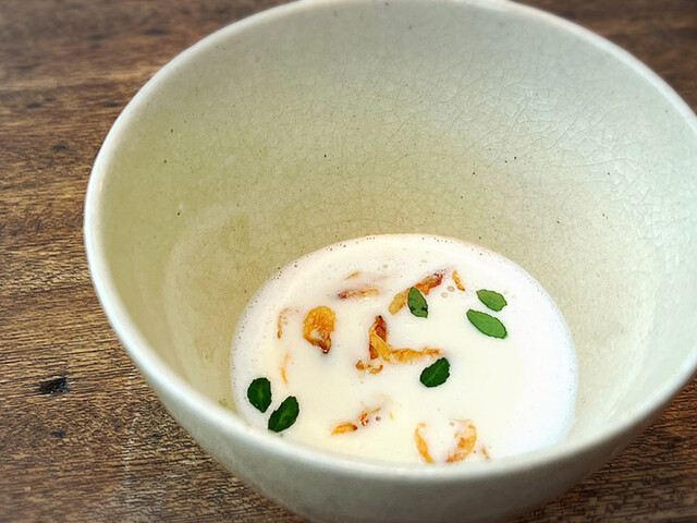 泡の中には、インゲン豆、豆乳と葛粉で作ったムースや北寄貝が入っています。