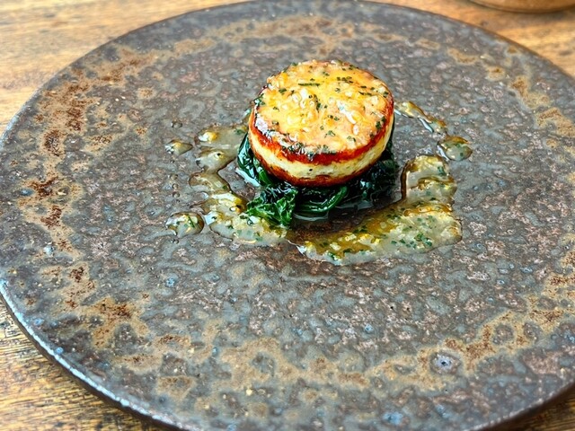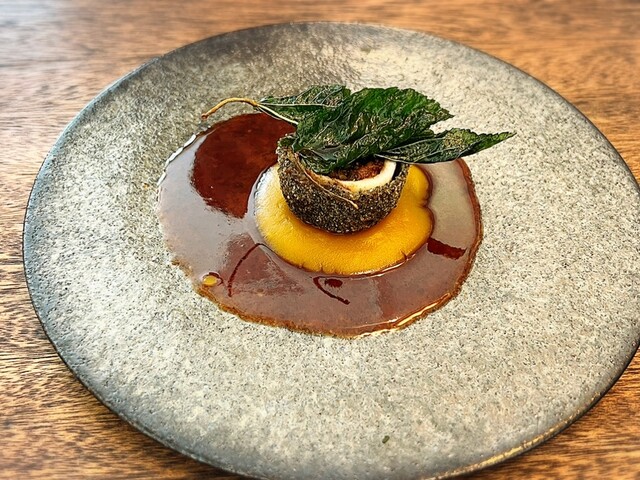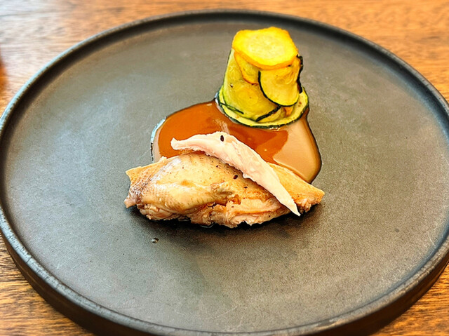 鶏のお出汁が効いたムースと香ばしい焦がしバターのソースが良く合います。